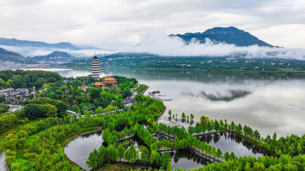 這是2025年10月17日拍攝的重慶市開州區漢豐湖景象(無人機照片)。新華社記者 王全超 攝