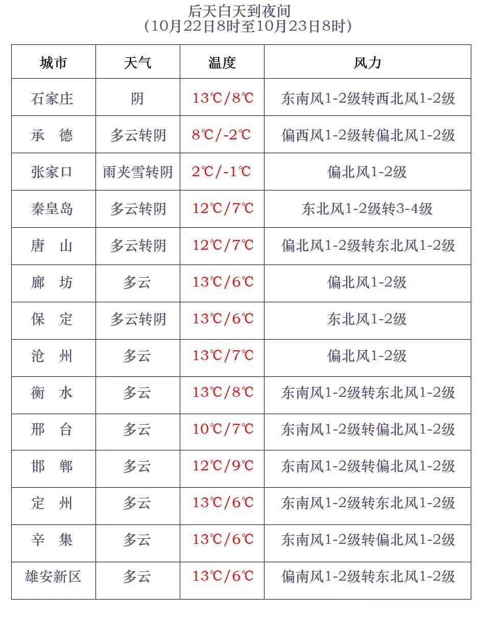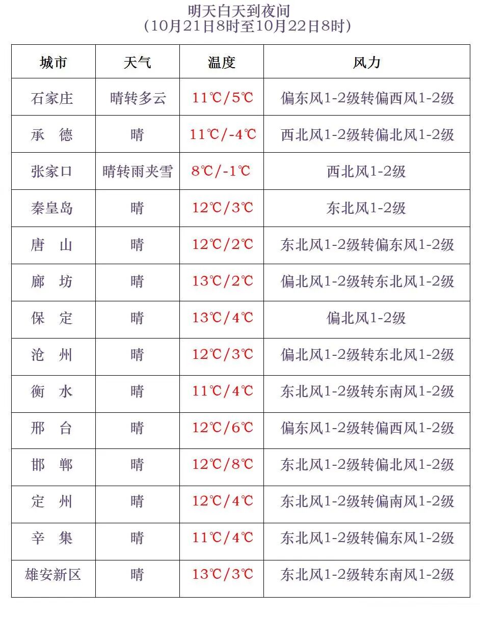 明天夜間到22日,張家口、承德西部多雲轉陰有雨夾雪或小雪,局地有中雪到大雪,其他地區晴轉多雲。