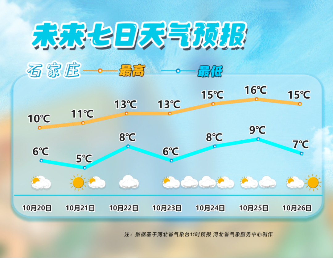 明天白天,石家莊、邢台西部、邯鄲西部多雲間晴,其他地區晴間多雲。