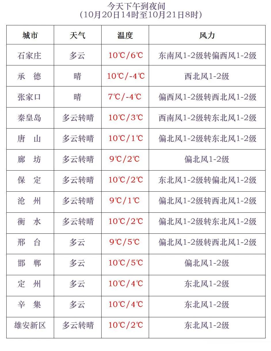 今天下午到夜間,保定、廊坊及以南地區多雲轉晴,其他地區晴間多雲。