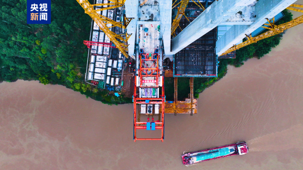 渝萬高鐵石沱長江大橋首節鋼樑成功架設