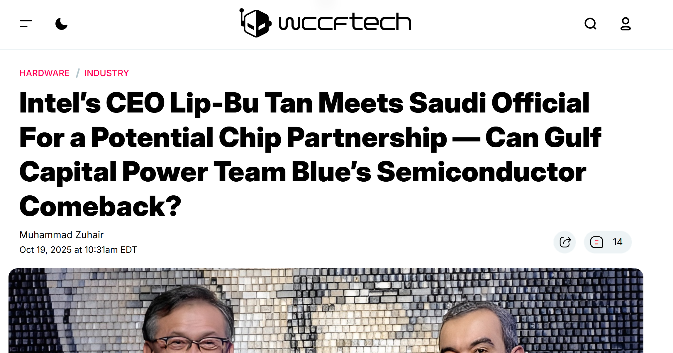 【環球網科技綜合報道】10月20日消息,據Wccftech報道,英特爾公司首席執行官陳立武與沙特阿拉伯通信與信息技術部長阿卜杜拉・阿爾-斯瓦赫舉行會面,雙方圍繞半導體及人工智能領域潛在合作展開深入交流。此次互動不僅為英特爾探索新發展路徑創造可能,也折射出全球半導體產業佈局與區域經濟轉型的深度聯動。