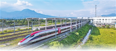5月20日,在印度尼西亞萬隆德卡魯爾站,一列雅萬高鐵高速動車組列車駛出站台。