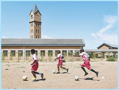 在中國援建的博茨瓦納莫帕尼小學,學生們進行體育鍛煉。