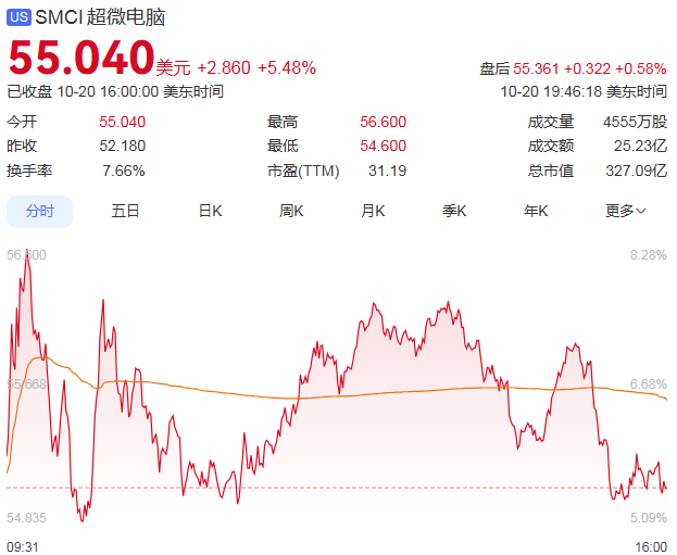 科技股整體走強,超微電腦漲超5%,安森美半導體漲超4%。