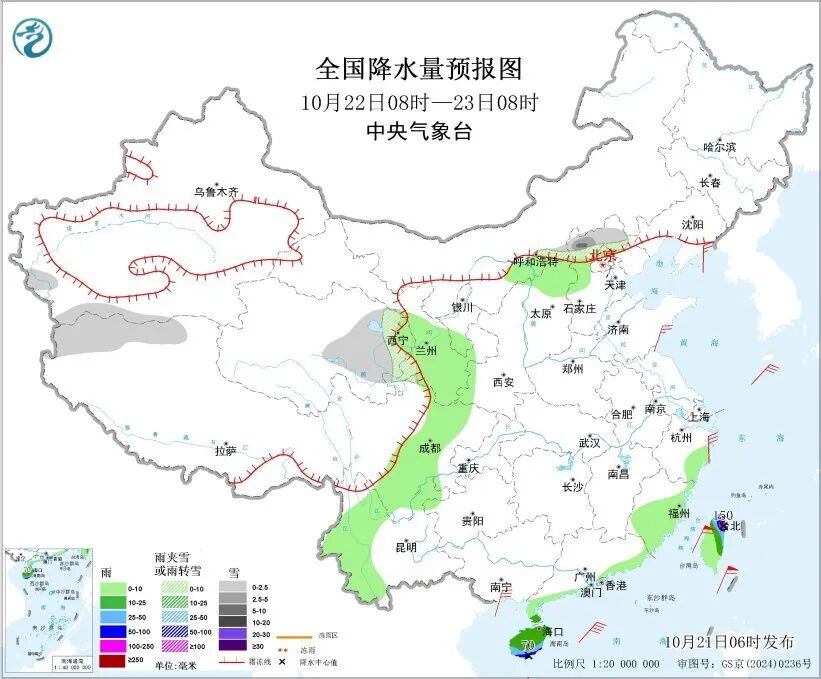 中央氣象台預計,明天,西藏西北部、青海東部、華北北部等地部分地區有小雪或雨夾雪,其中,河北北部等地部分地區有中到大雪。海南島、台灣島等地部分地區有中到大雨,其中,海南島南部、台灣島北部等地部分地區有暴雨或大暴雨。