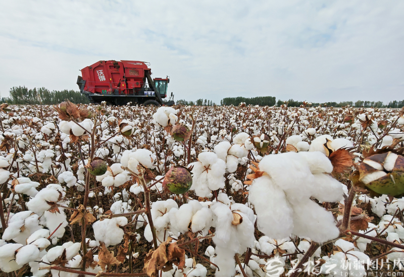 正值收穫季節,採棉機馳騁在原野上,採下掛在枝頭的朵朵棉花,“吐”出一個個潔白的棉花包。這一豐收場景如同“十四五”期間新疆的發展——以規劃為藍圖、以項目為良種、以創新為耕耘,在天山南北播下希望、收穫成就。