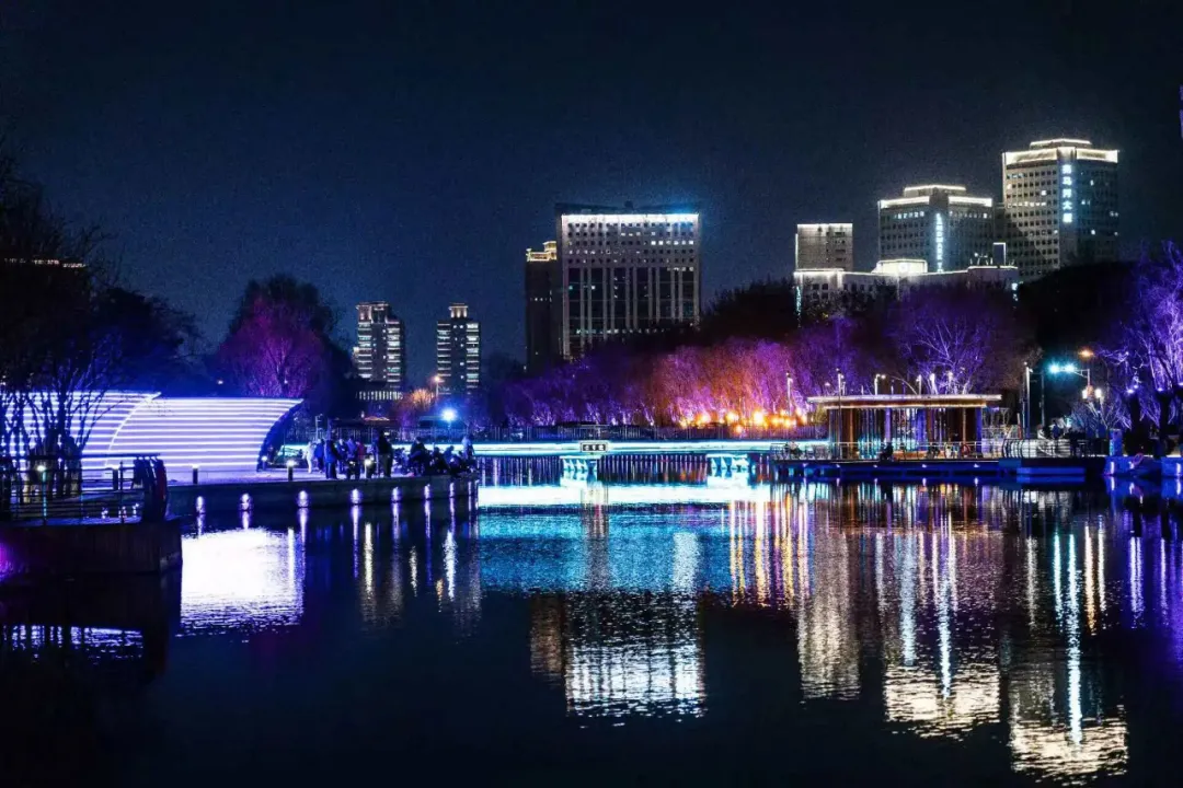 亮馬河夜景。圖源:北京市城管委官方微信公眾號“管城理市”