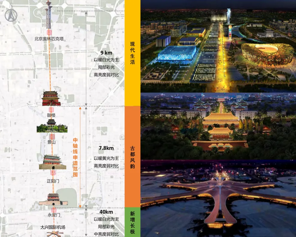 中軸線及其延長線整體呈現現代與古都對望的夜間視廊