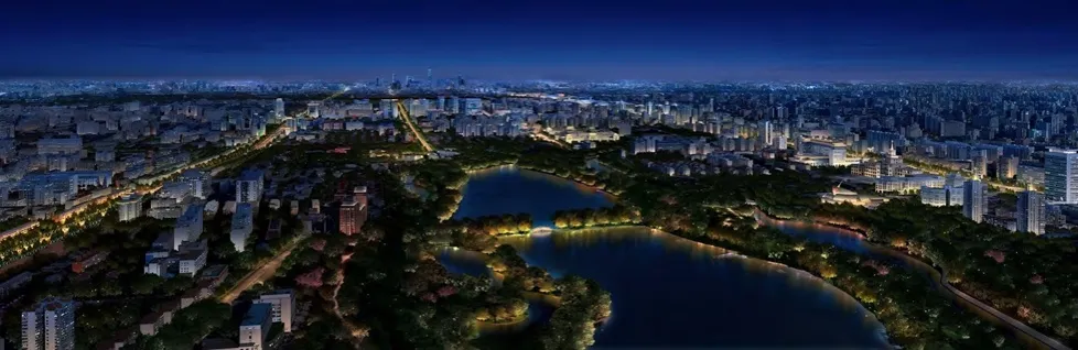 中央電視塔向東俯瞰玉淵潭夜景照明提升效果圖