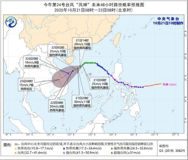 中央氣象台10月21日10時繼續發佈颱風黃色預警: