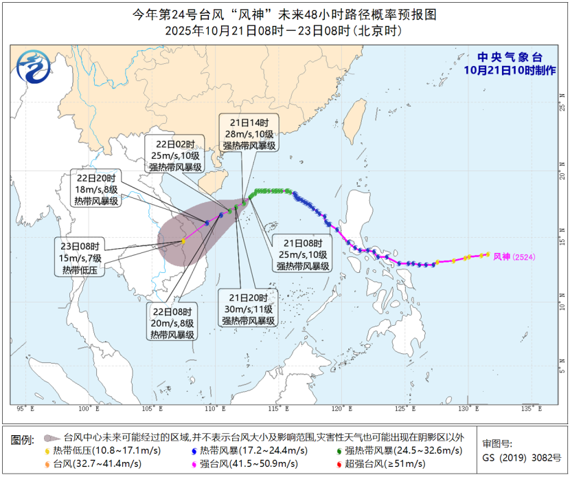 中央氣象台10月21日10時繼續發佈颱風黃色預警: