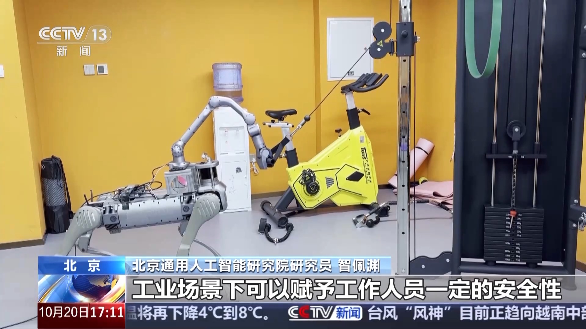 在北京通用人工智能研究院的實驗現場,一個搭載了這項新算法的四足機械犬,正有條不紊地執行擦白板的訓練任務。科研人員藉着這一實操場景,向記者解釋了力位混合控制算法的核心原理與突出優勢。