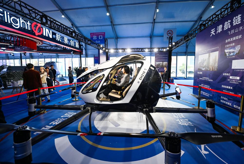 新華社天津10月20日電(記者郭方達)在第七屆中國天津國際直升機博覽會的展廳裏,一款造型別致的eVTOL(電動垂直起降飛行器)吸引了眾多觀眾。