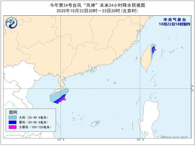 受冷空氣和“風神”的共同影響,22日20時至23日20時,海南島、台灣島北部等地有大到暴雨,其中海南島東南部、台灣島北部等地部分地區有大暴雨(100—120毫米)。