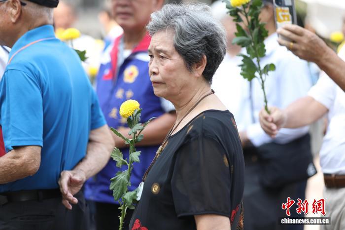 2025年9月3日是抗戰勝利紀念日,台灣民間團體當天在台北市中山堂廣場舉行抗戰勝利80週年紀念活動,緬懷先賢的犧牲奉獻,呼籲正視歷史、珍愛和平。圖為台灣抗日誌士羅福星的孫女羅秋昭出席活動,向抗戰中犧牲的軍民同胞敬獻鮮花。 中新社記者 朱賀 攝