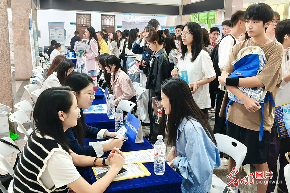江蘇省2026屆高校畢業生秋季招聘月暨南京醫科大學康達學院專場招聘會舉行,來自醫藥行業的60餘家單位為2026屆畢業生提供1700餘個崗位。招聘現場人頭攢動,畢業生們紛紛前往自己心儀的工作單位諮詢洽談。(朱德富攝/光明圖片)