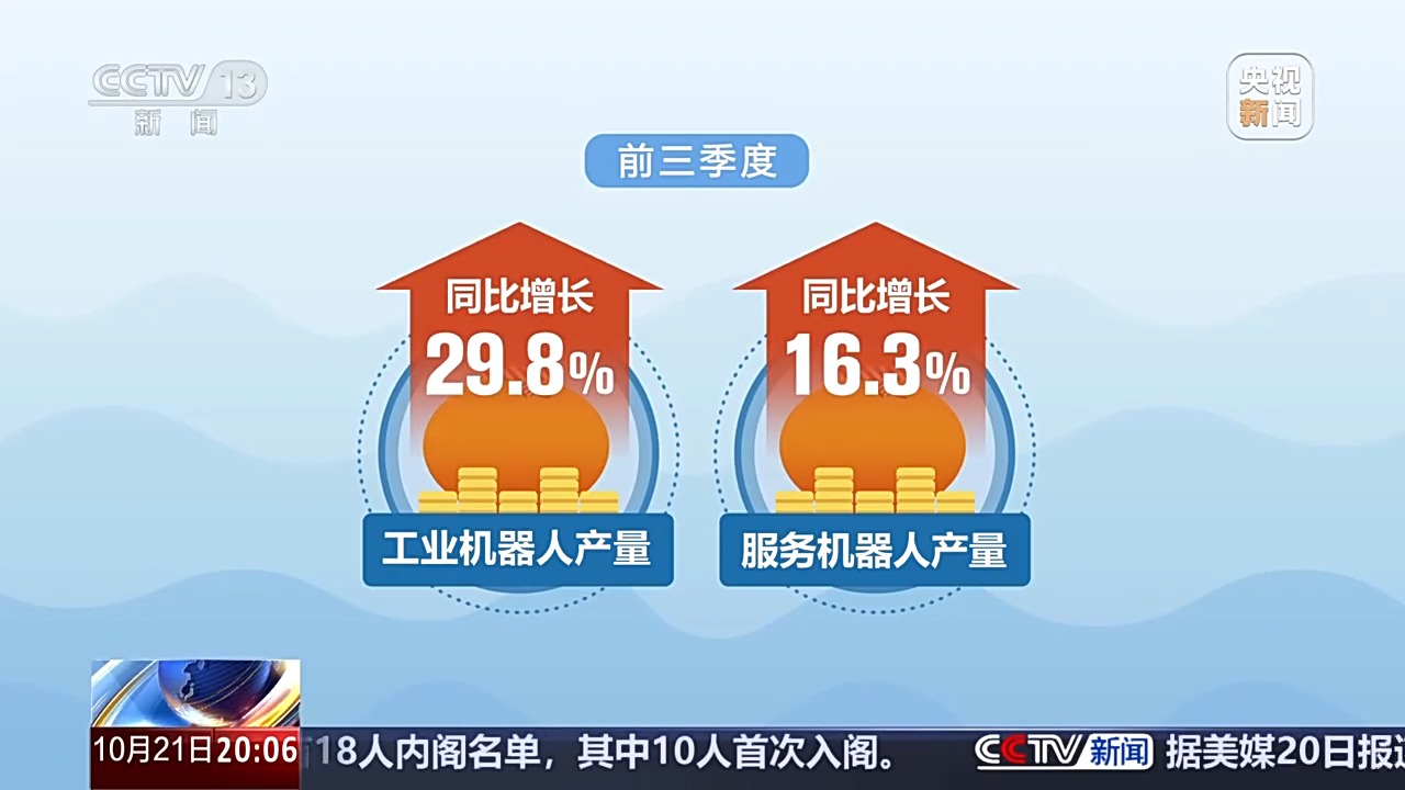 第三季度,我國規模以上高技術製造業增加值同比增速明顯快於全部工業;信息傳輸、軟件和信息技術服務業增加值增長11.7%,比上年同期加快1.7個百分點。前三季度,規模以上高技術製造業增加值同比增長9.6%;工業機器人、服務機器人等產品產量分別增長29.8%、16.3%。