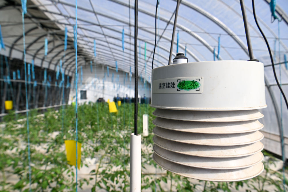這是3月20日在農芯科技(天津)有限責任公司智慧農業園區智能温室內拍攝的用於監測環境數值的捕捉器。春暖花開時節,科研人員開展多場景的智慧農業田間應用試驗,用科技賦能農業生產。新華社記者 孫凡越 攝