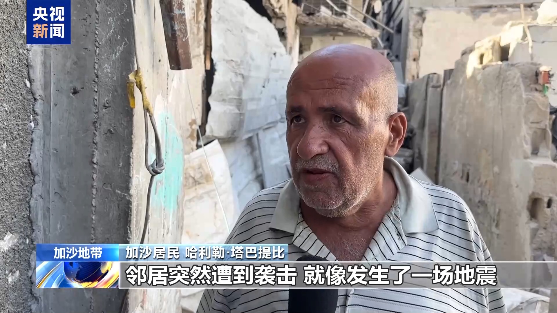 *加沙居民 哈利勒·塔巴提比:*鄰居突然遭到襲擊,就像發生了一場地震。那真是一場地震,整條街的房子都被震塌。除了鄰居的房子,周圍好幾棟民居也嚴重受損。