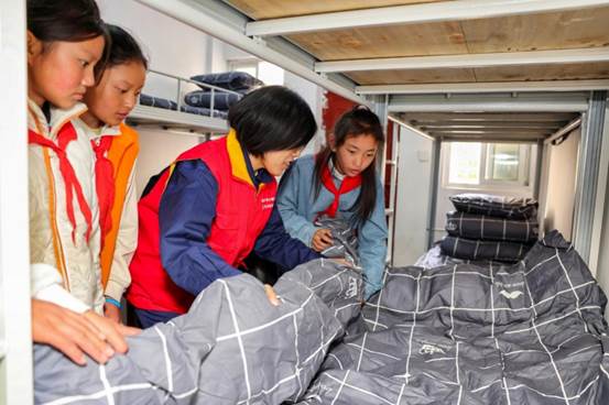 “New clothes! And new beds too!” When volunteers opened the supply boxes, revealing thick winter clothing and neat new dorm beds, Zhuoma, a fifth-grader, was the first to step forward, her eyes shining as brightly as the stars in the mountains. Considering the severe cold of minus ten-odd degrees Celsius in the plateau’s autumn and winter, volunteers specially selected thickened winter clothes with fleece lining—every detail was filled with thoughtfulness. Faced with the old wooden beds in the student dormitories, the donated new beds were not only sturdy and stable but also matched with comfortable and warm bedding. Rolling up their sleeves, volunteers assembled the bed frames and spread out the mattresses. In no time, the originally simple dormitories took on a “new look”. The children jumped around the new beds, shouting “Sleep Well, Grow Well” in both Chinese and Tibetan.