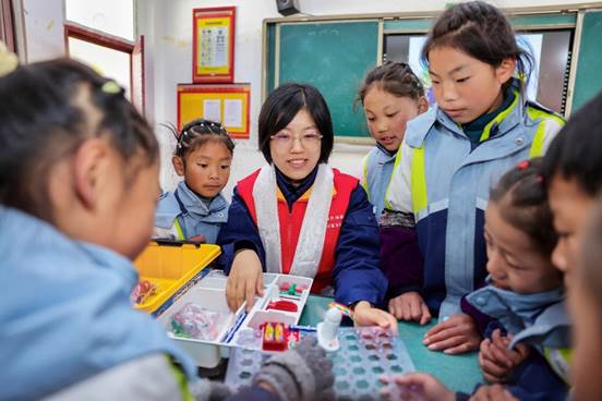 In the classroom, “I can ‘generate electricity’ too!” Zhaxi excitedly held up his work and showed it off to his friends. Volunteers were using colorful electric building blocks to teach the children how to assemble “miniature power stations”. On the playground, a timid child’s soft voice asked, “Uncle, can you play basketball?” Immediately, a joyful atmosphere filled the air. At that moment, the volunteers paid no attention to altitude sickness and started a game similar to “Eagle Catches Chickens” with the children. Basketballs were passed between little hands that were red from the cold, and cheers and shouts mingled with the wind, echoing over the plateau playground for a long time.