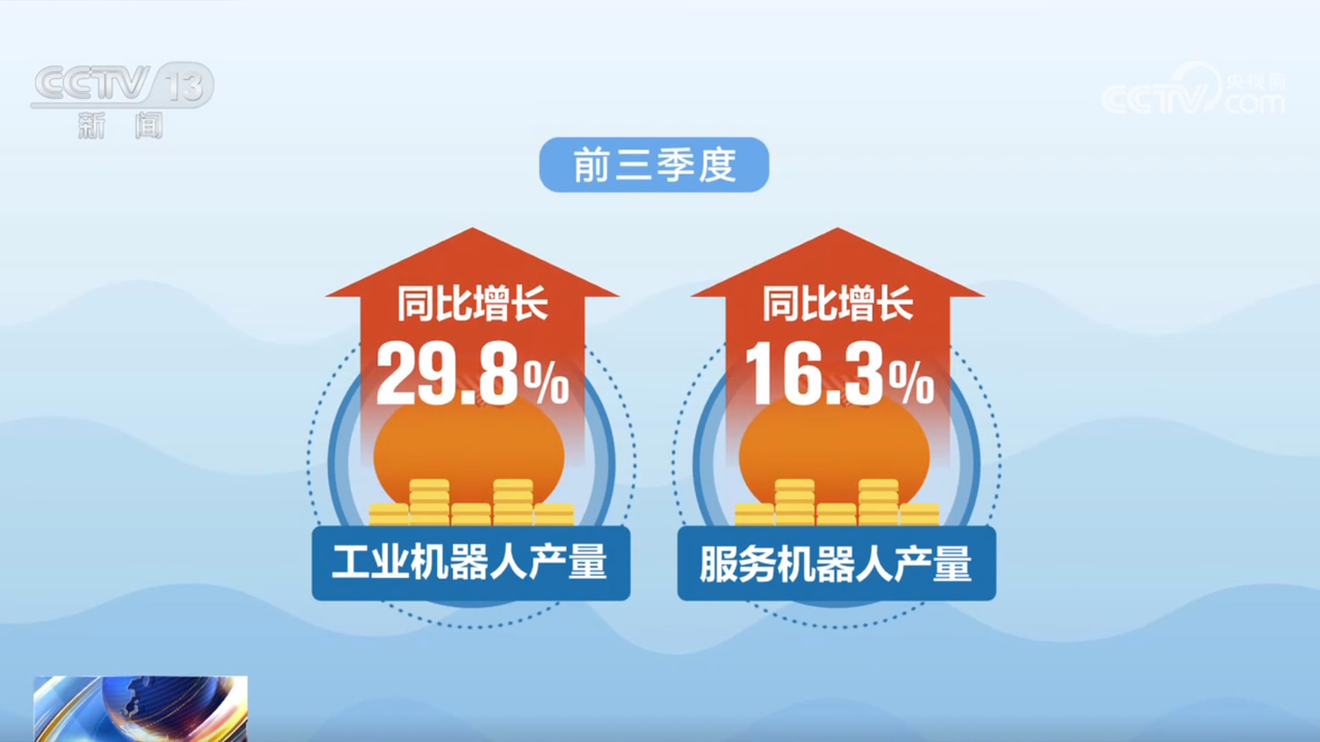 第三季度,我國規模以上高技術製造業增加值同比增速明顯快於全部工業;信息傳輸、軟件和信息技術服務業增加值增長11.7%,比上年同期加快1.7個百分點。前三季度,規模以上高技術製造業增加值同比增長9.6%;工業機器人、服務機器人等產品產量分別增長29.8%、16.3%。