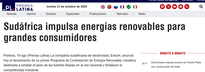 對此,拉丁美洲通訊社發文稱,南非是世界上最依賴煤炭的經濟體之一,面臨國內外強烈壓力,要求加快向更清潔的能源模式轉變。多年來,埃斯科姆已經開發了電池儲能項目和抽水蓄能電站,同時推進到2040年實現32吉瓦可再生能力和綠色氫項目的研究。