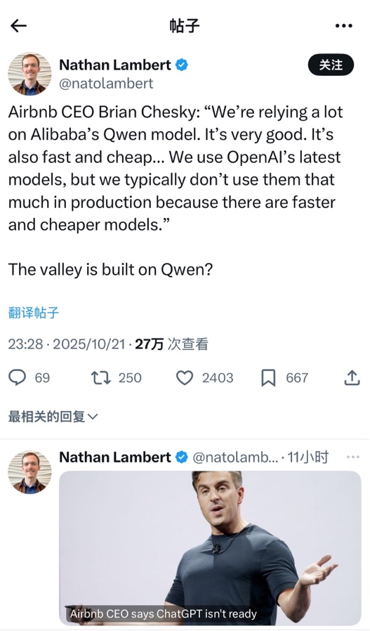 Airbnb CEO稱大量依賴阿里通義千問:比OpenAI更好更便宜,硅谷都在用