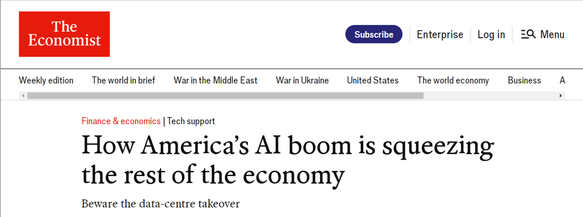 英國《經濟學人》雜誌近期評論指出,除了人工智能之外,美國經濟的大部分領域似乎都顯得低迷。AI爆發式增長雖能“美化”數字,卻忽略了美國實體經濟的空心化,導致GDP含金量低。