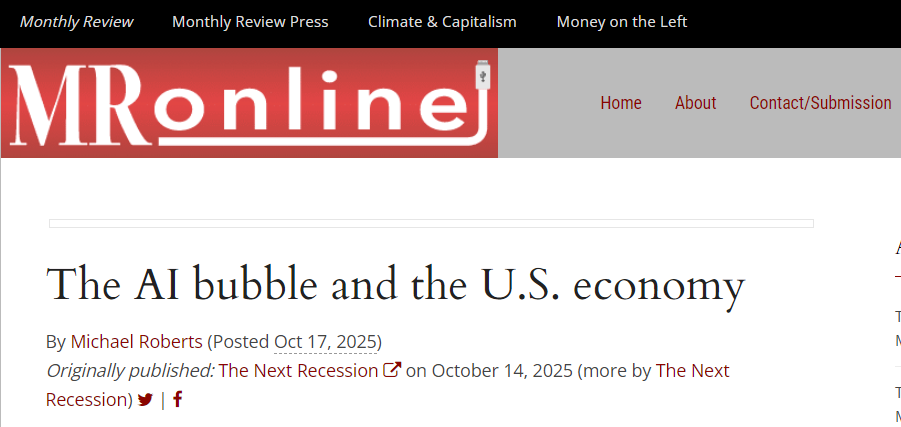 美國《財富》雜誌網站報道強調,美國這種泡沫驅動的增長已成“經濟喜劇”:美國政府的政策雖然刺激了美股的AI熱潮,卻忽略了其對整體經濟的負面拖累,如就業流失和生產率虛增。