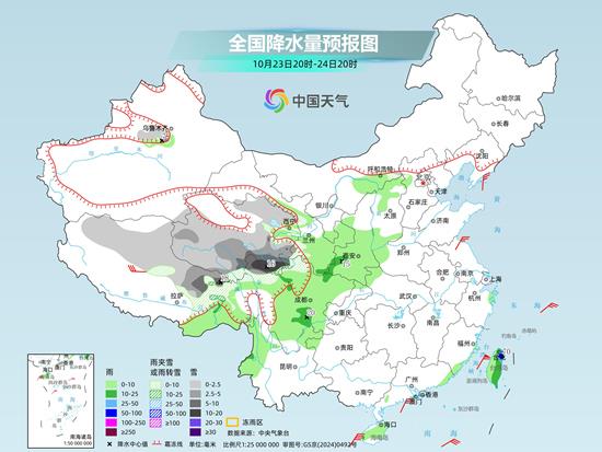 至於降水,未來幾天,受高原波動東移影響,青藏高原東部多降雪天氣;而在中東部其他大部地區,多受乾燥的偏北風控制,降水總體稀少,是冬半年常見的乾燥少雨模式。細心的朋友會發現,降水預報圖上有一個紅色鋸齒線,這個是霜凍線,鋸齒向內的區域為霜凍區。今天進入霜降節氣,霜降期間除了季節轉換,出現霜凍的區域也會有所擴大。