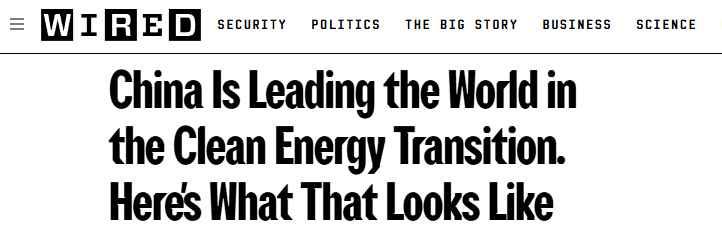美國《連線》雜誌(Wired)網站日前刊文稱,中國在清潔能源轉型領域處於世界領先地位。9月底,中國首次提出“到2035年,中國全經濟範圍温室氣體淨排放量比峯值下降7%-10%,力爭做得更好”,明確了碳達峯階段後全經濟範圍、全温室氣體淨排放下降等一攬子應對氣候變化目標。