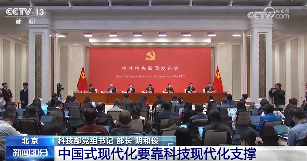 科技部黨組書記、部長陰和俊介紹,面向未來五年,《建議》提出,中國式現代化要靠科技現代化做支撐。他從加強原始創新和關鍵核心技術攻關、推動科技創新和產業創新深度融合、一體推進教育科技人才發展、深入推進數字中國建設4個方面的部署作了介紹。