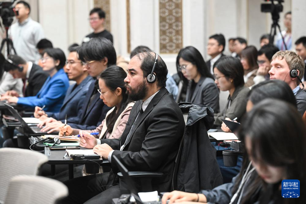 10月24日,中共中央舉行新聞發佈會,介紹和解讀黨的二十屆四中全會精神。這是記者在現場工作。