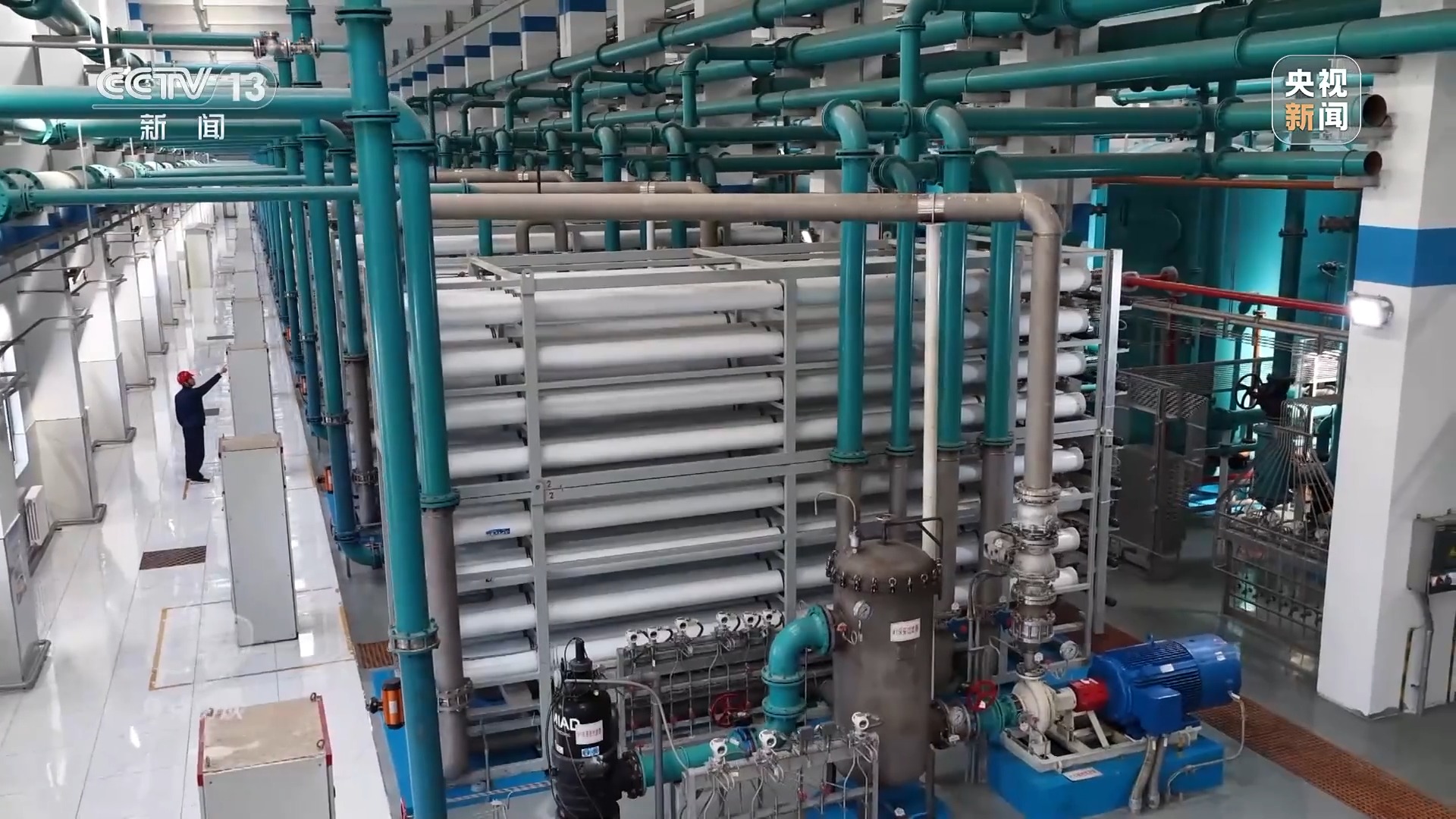 在依海而建的天津南港工業區內,有着目前全國單機規模最大的反滲透海水淡化和綜合利用一體化項目。5條生產線,日產量達15萬噸,可以滿足68萬城鎮居民的單日用水量,全年可替代、節約淡水資源超過5000萬噸。