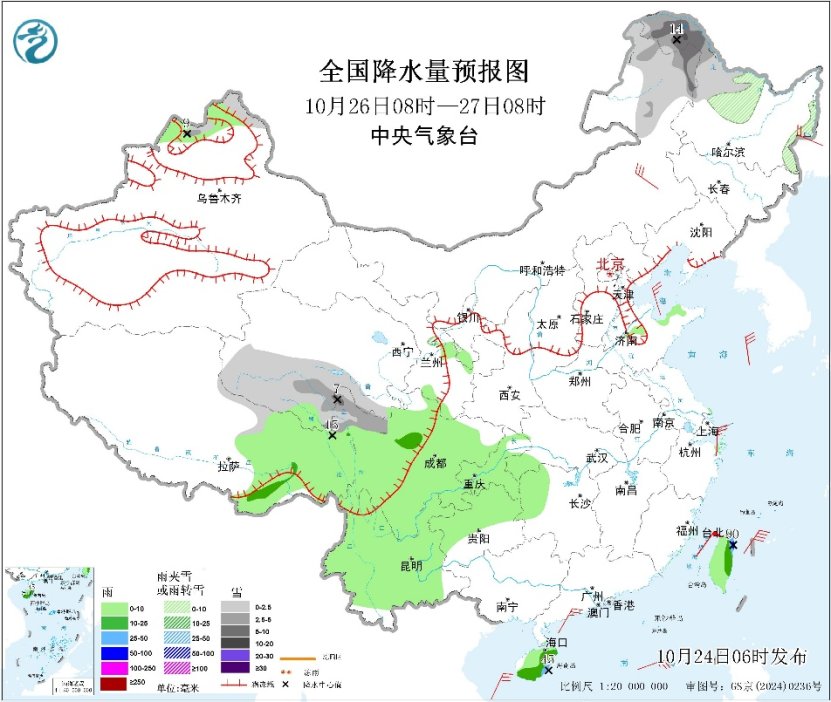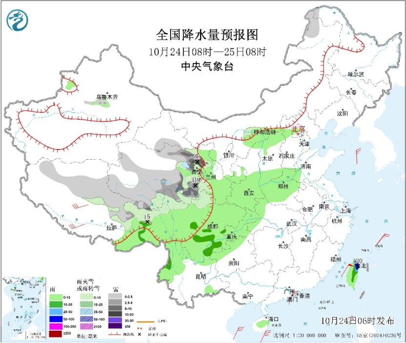 昨日,雨雪天氣集中在青藏高原東部,氣象監測顯示,青海東部和南部、川西高原北部、西藏中部、甘肅中部等地出現小到中雪或雨夾雪,局地大雪,青海果洛局地暴雪。預計24日至26日,青藏高原東部的雨雪天氣持續,青海大部、西藏北部和東部、川西高原中北部、甘肅中部和南部等地有小到中雪(雨)或雨夾雪,青海東部和南部、甘肅中部、西藏東北部、川西高原北部等地部分地區有大雪,局地暴雪或大暴雪。今天是青海東部一帶降雪最強的一天。