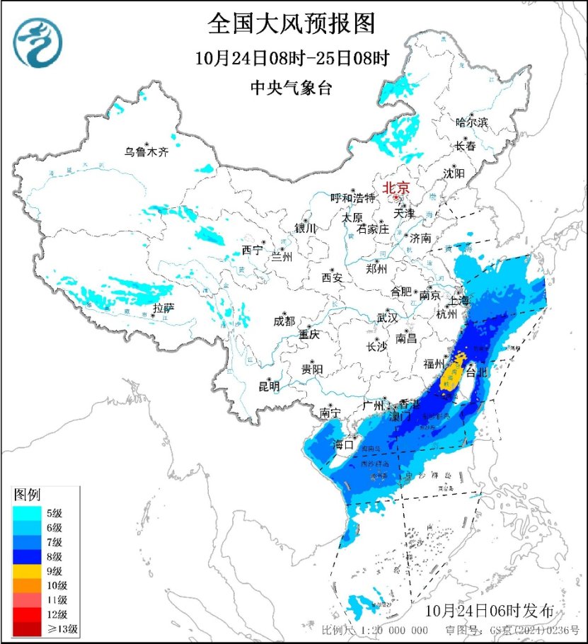 *我國東部和南部海域的風力明日減弱。*今天,東海大部海域、台灣海峽、台灣以東洋麪、巴士海峽、南海北部和中西部海域、北部灣仍有7~8級、陣風9級的大風,其中台灣海峽風力可達9級,陣風10~11級。明天,上述海域的風力將減弱。
