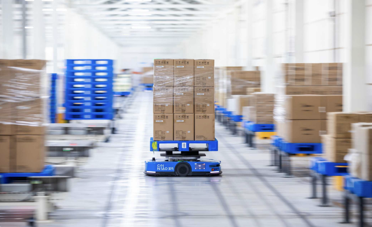 此外,依託菜鳥智慧物流系統調度,機器人高效作業,整體商品上架效率提升6倍;通過優化庫存管理,暢銷商品被智能分配至最優出庫庫位,下架出庫效率提升3倍,已廣泛服務於快消、美妝、家電、家裝及商超等多類行業客户。