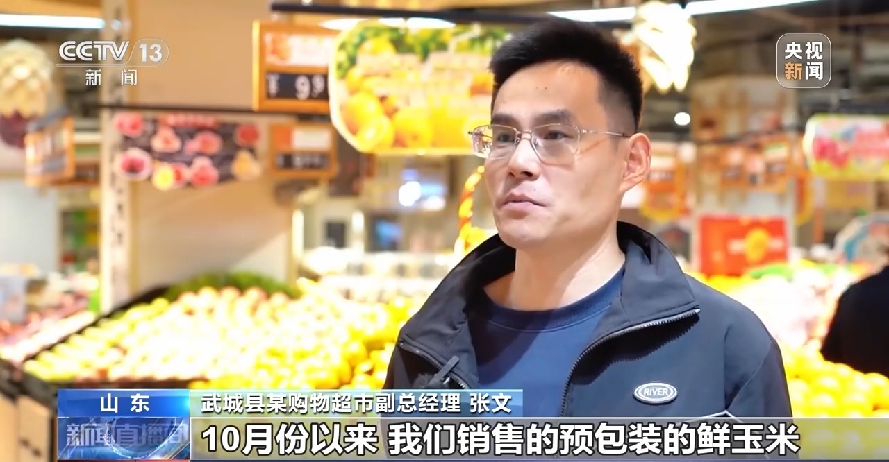 *武城縣某購物超市副總經理 張文:*10月份以來,我們銷售的預包裝的鮮玉米,真空包裝的鮮玉米,銷售量均達到了5000斤以上,同比增長30%以上。