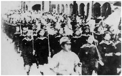 台灣光復後,台灣同胞熱烈歡迎祖國軍隊到來。