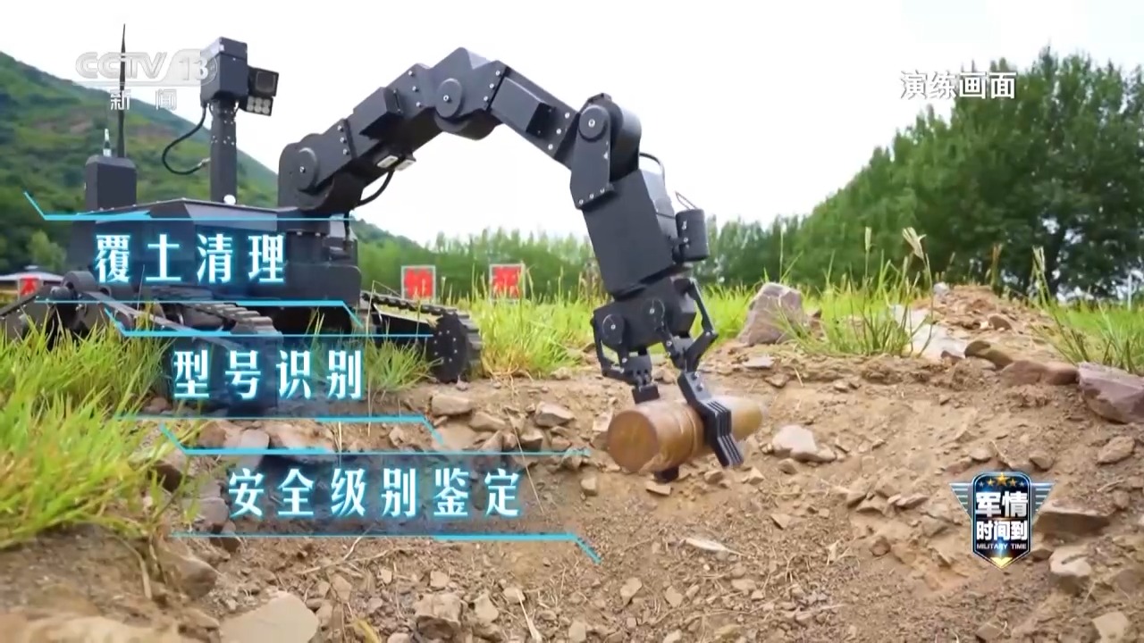 無人裝備也廣泛應用於爆炸物處置等場景。在聯勤保障部隊某部組織的一場實戰化演練中,探雷器組根據無人機傳回的偵察情報對模擬遇襲車隊周圍展開搜索,2個鑑定小組在無人機引導下對發現的危險彈藥進行識別。操作員通過即時回傳的畫面,精準標記未爆彈藥位置及高危區域。隨後,操作員通過遙控2台履帶式排爆機器人,完成對未爆彈藥的覆土清理、型號識別與安全級別鑑定。