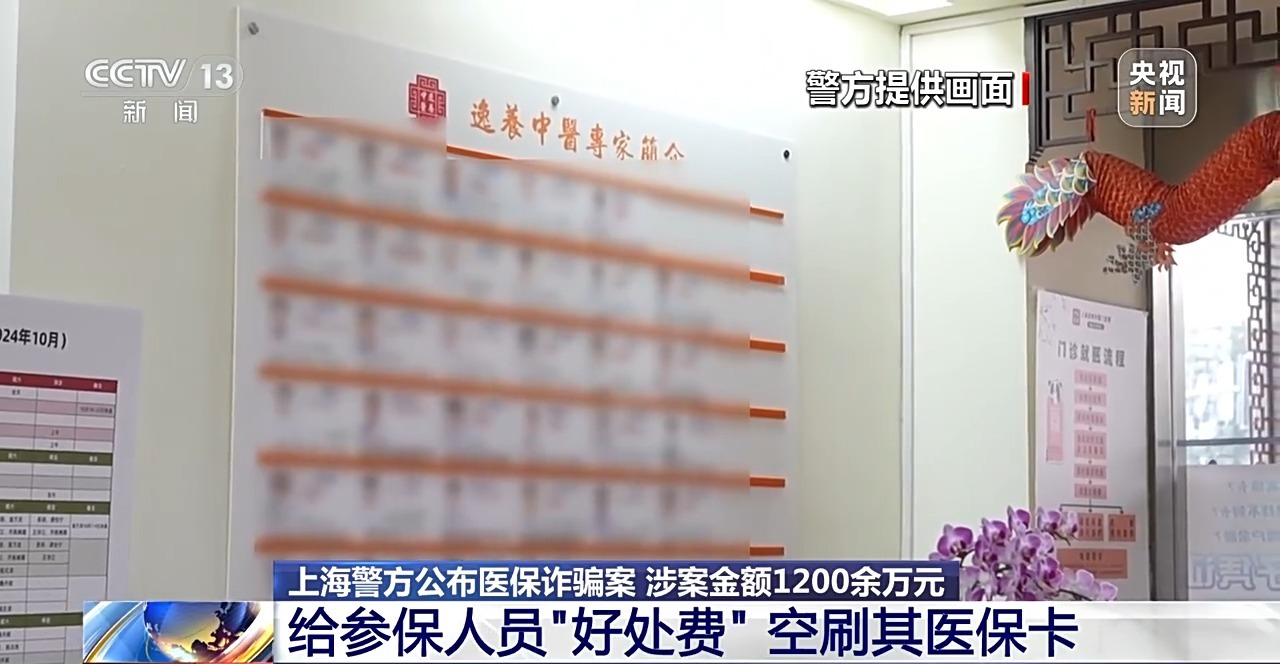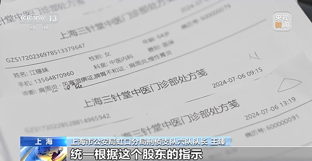 *上海市公安局虹口分局刑偵支隊六隊隊長 王臻:*這9人第一個自己本身有醫療從業背景,其次,或多或少都跟這家逸養中醫醫院的股東有過一些商業上的往來,可能會幫助這家醫院,在這家醫院裏面提供自己的醫保卡進行空刷。空刷我們知道就是醫保詐騙,但是具體的很細節的證據是沒有的。