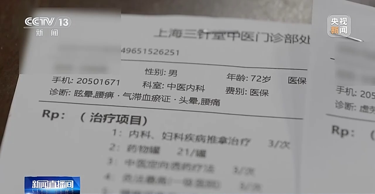 *上海市公安局虹口分局刑偵支隊六隊隊長 王臻:*我們發現這三個參保人各自都拿着一個信封先到了前台,從信封裏掏出醫保卡,當然不止一張了,然後再拿出裏面的現金進行掛號。掛完號之後,“黃牛”會帶着她們進入醫生的辦公室,我們也跟着後面去看,發現醫生也不問診、也不詢診,直接就告訴她們,你在這些表格上面進行簽字。