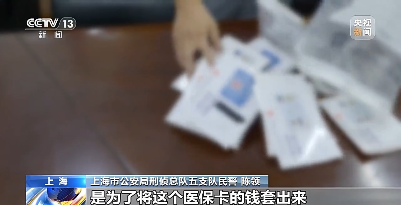*上海市公安局刑偵總隊五支隊民警 陳領:*實際上真正的參保人可能沒有去做上述所説的這些診療,或者也沒有去吃這些所謂開出來的中藥,那麼最終的目的是將這個醫保卡的錢套出來,把我們這個公共的醫保基金,一部分的獲利就是通過醫院這邊蠶食掉,最終大家進行一個分成。