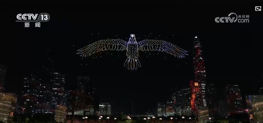 夜幕降臨,一場無人機創意秀在深圳天空徐徐展開。12000架無人機騰空而起,獻上了一場科技與藝術共舞的視覺盛宴。