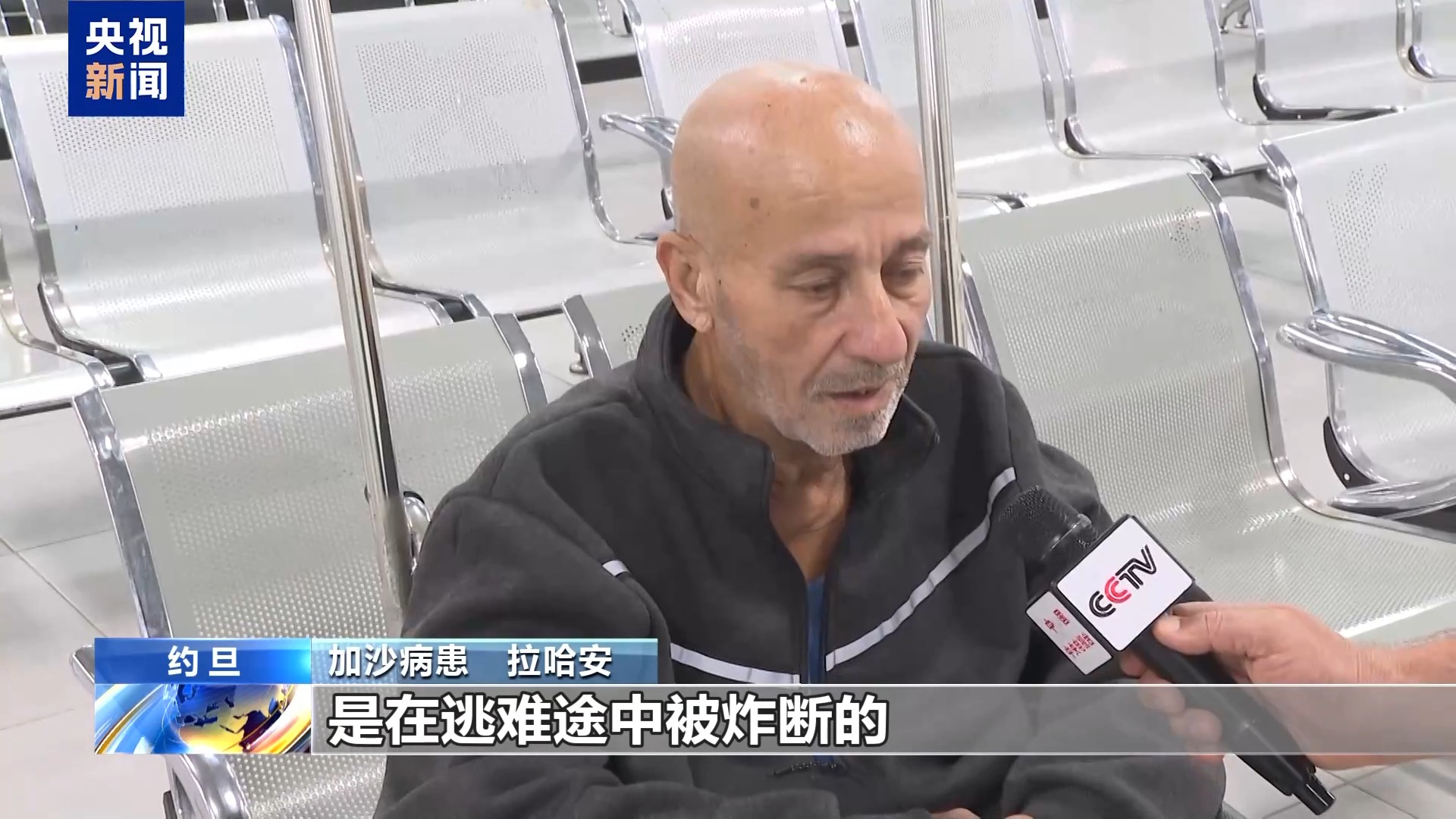 *加沙病患 拉哈安:*我的腿被炸斷了,是在逃難途中被炸斷的。我的房子也在戰爭中被摧毀了,兩棟房子全都沒了。我的家族中有18個人遇難,其中包括我的兒孫們,只留下兩個孫女,其中一個頭部被彈片擊中,她受了很重的傷,眼睛失明瞭。