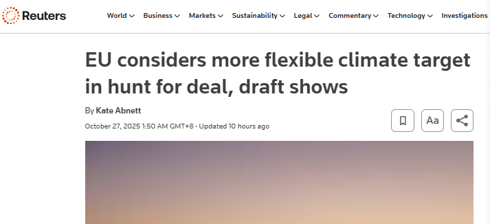 路透社獲取的這份妥協提案草案顯示,各國已提出一項計劃,允許歐盟每兩年對2040年目標進行一次審查。這一機制可能在未來為歐盟調整該目標提供空間。
