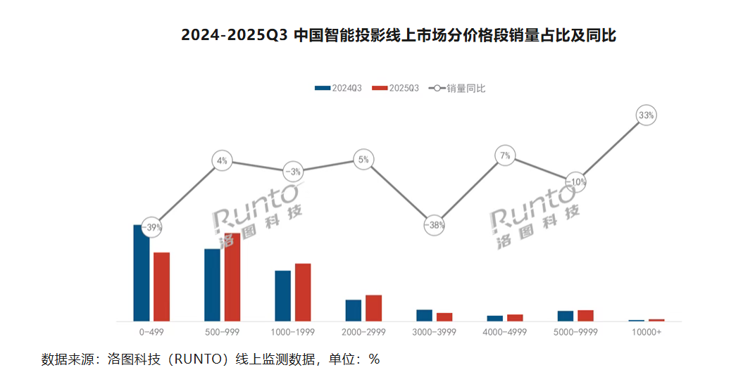 根據洛圖科技(RUNTO)線上監測數據顯示,2025年第三季度,5000元以上價格段市場份額為5.0%,同比上漲了0.5個百分點。