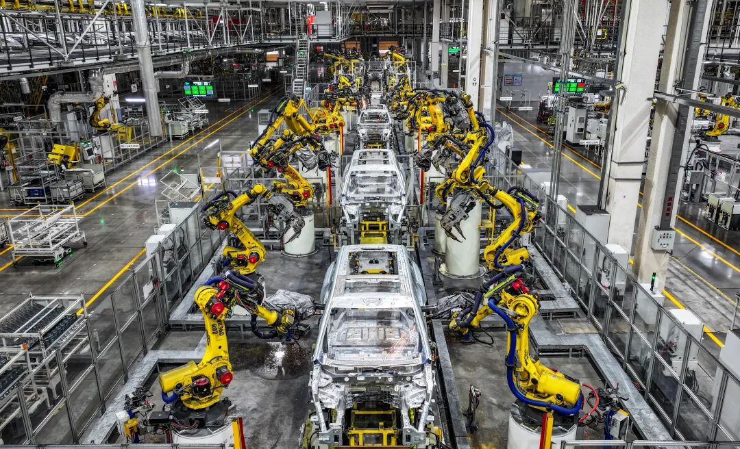 位於重慶市兩江新區的賽力斯汽車超級工廠拍攝的自動化生產作業現場。 新華社記者 王全超 攝